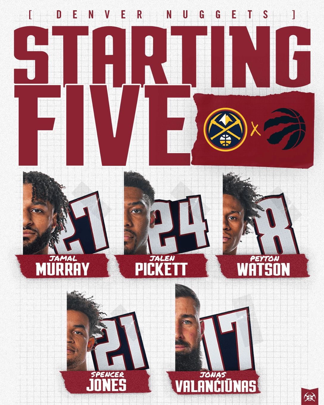 掘金首發:默里、沃特瓦蘭皮克特、丘納沃特森、流言里皮斯賓塞、瓦蘭丘納斯