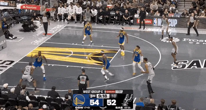 虎撲11月15日訊 NBA杯小組賽,勇士對陣馬刺的角加接起比賽正在進行中。
