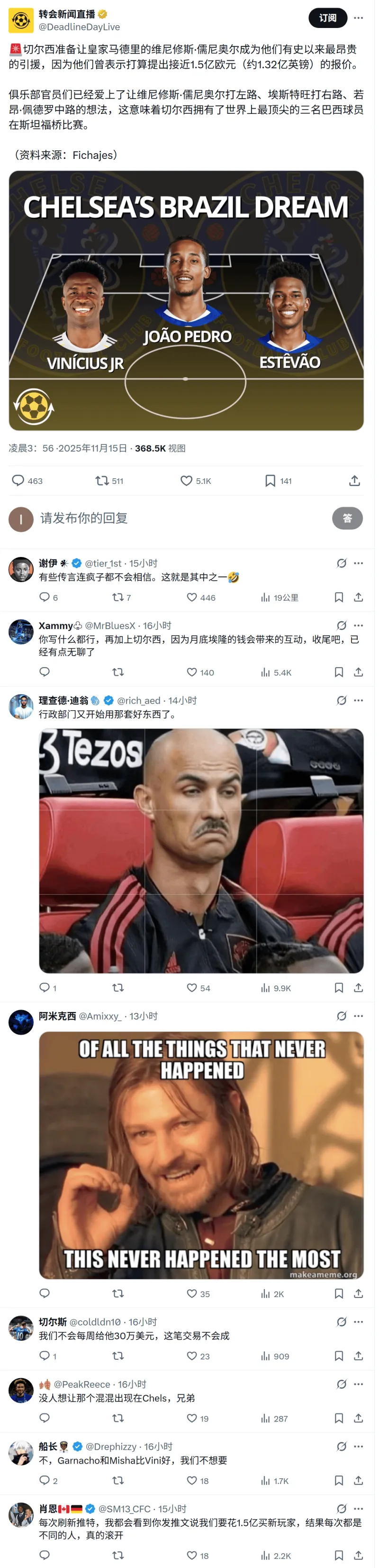 我轉這個推的續切新聞,只是爾西因為他是個有3百萬+訂閱數的賬號。