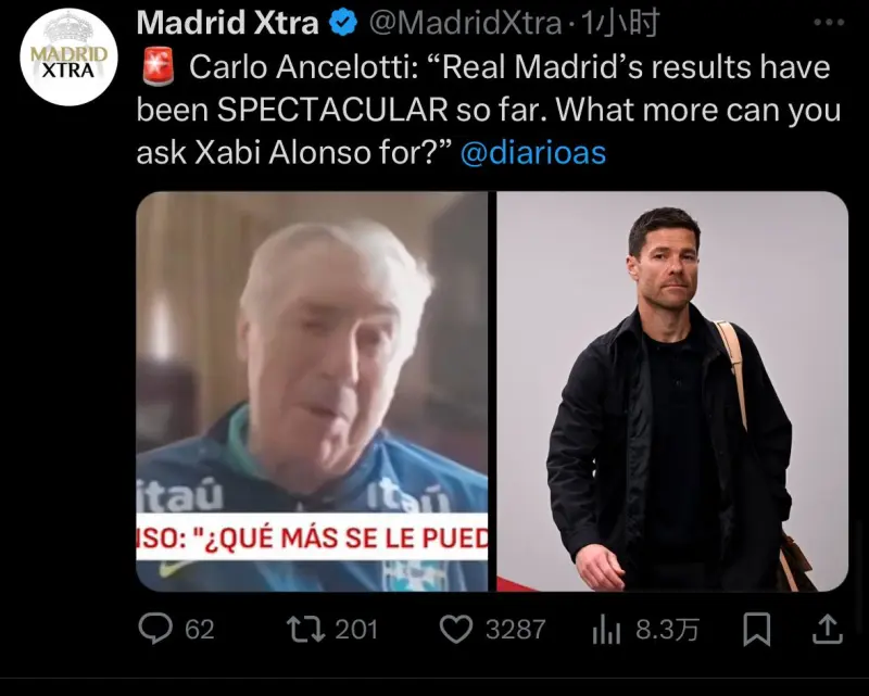 安切洛蒂:皇馬到目前為止成績出色,安切阿隆還能怎么要求阿隆索呢?由馬德里7號小俞全網同名 發表在皇馬專區 https://bbs.hupu.com/realmadrid