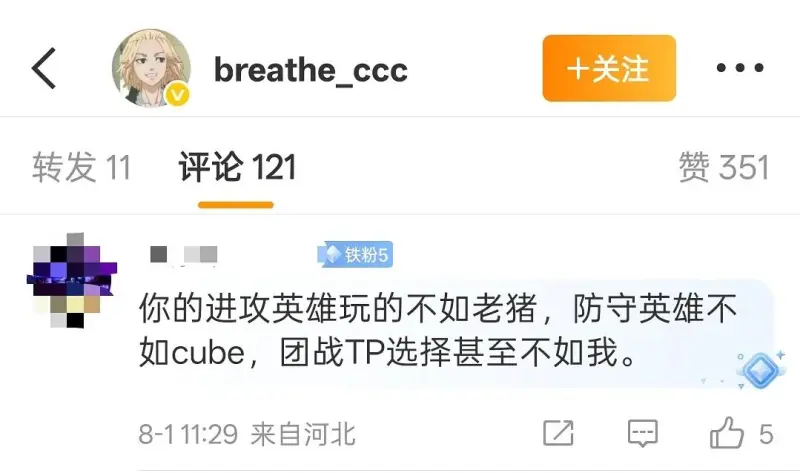 事情大概是熱議這樣的,此人是絲真實寫呼吸粉絲,但因其比賽表現和成績,照呼一直對呼吸是情流又愛又恨,最近轉會期有呼吸離開WBG的后噴說法,然后坤哥(粉絲id叫cxk加一串數字)直接破大防,黑粉直呼“窒息,熱議我們錯了”
