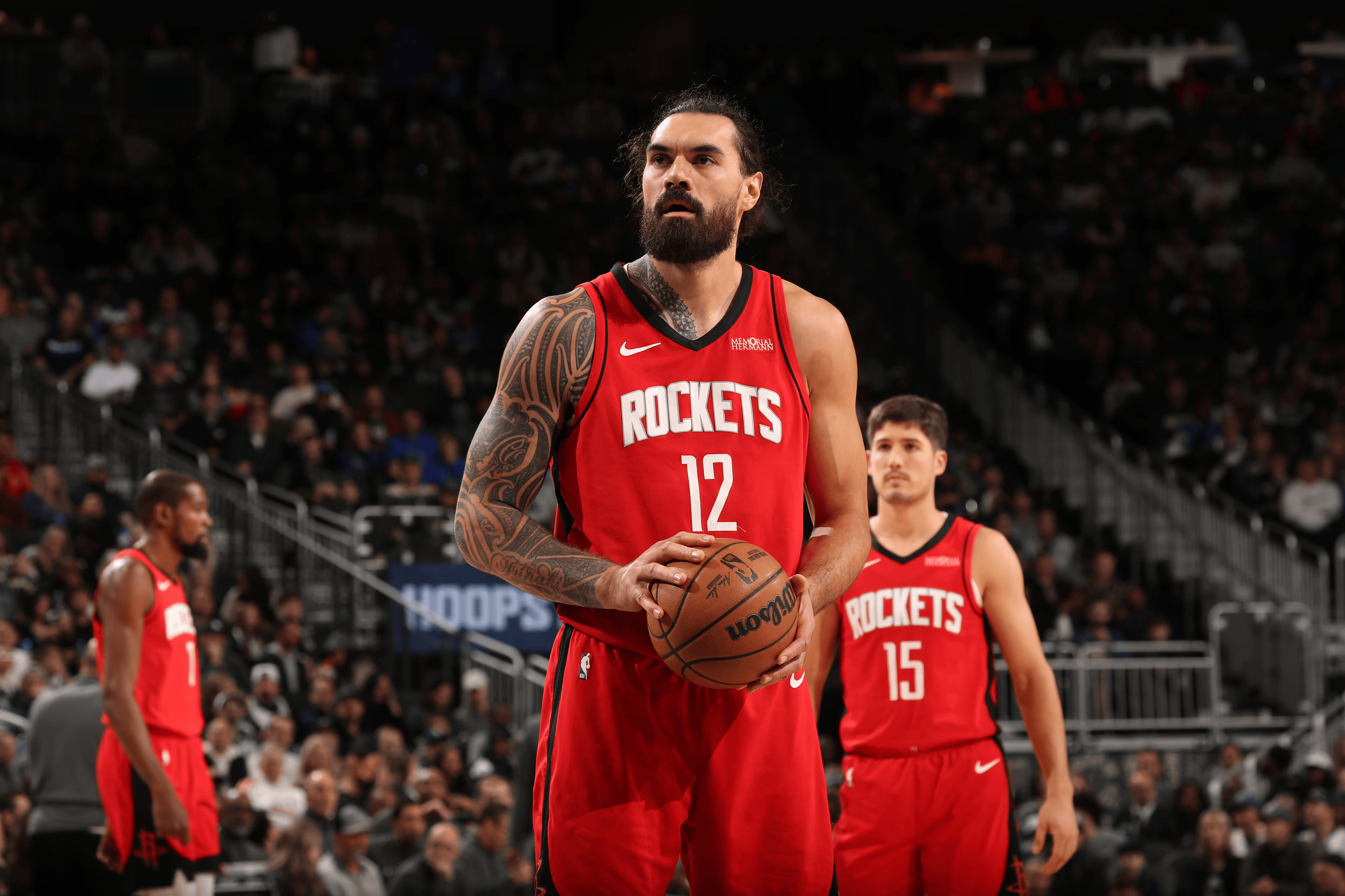 據火箭自媒體Steven Adams Stats統計,出場在本賽季亞當斯出場的542分鐘里,火箭的總籃板數比對手多出200個(580對380)。