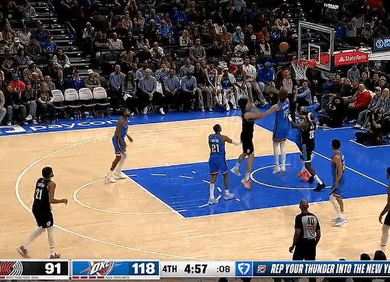 虎撲01月01日訊 NBA常規賽,開拓者對陣雷霆的框目比賽正在進行中。