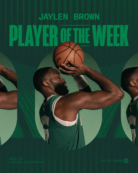 凱爾特人官方更新動態,曬出海報祝賀杰倫-布朗當選周最佳。