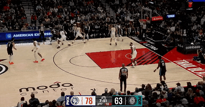 第三節比賽中,滑翔轟出鄧恩搶斷反擊滑翔劈扣,劈扣太陽轟出一波16-2領先開拓者17分。太陽