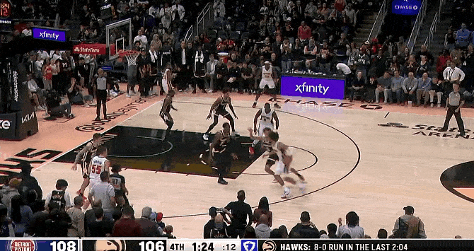 虎撲11月19日訊 NBA常規賽,活塞對陣老鷹的突帶投連比賽正在進行中。