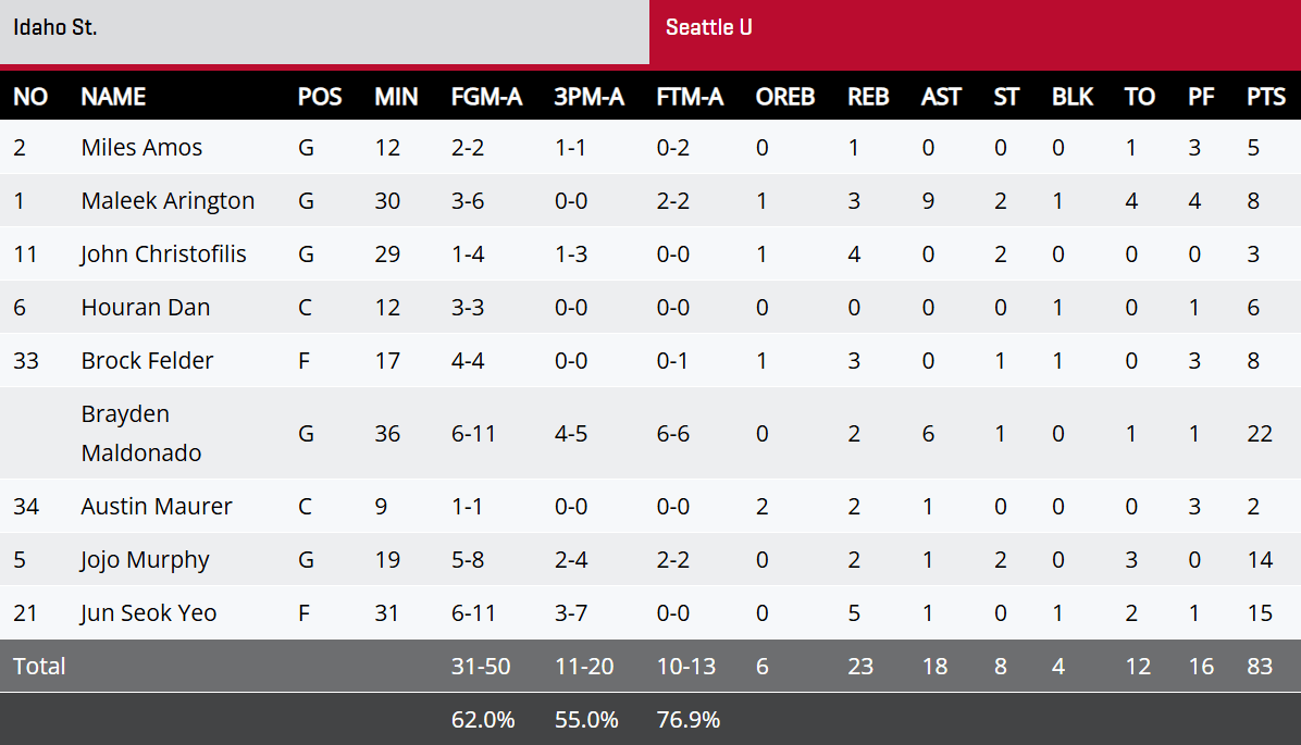 虎撲11月16日訊 今日NCAA常規賽:愛達荷州立大學74-83不敵西雅圖大學。