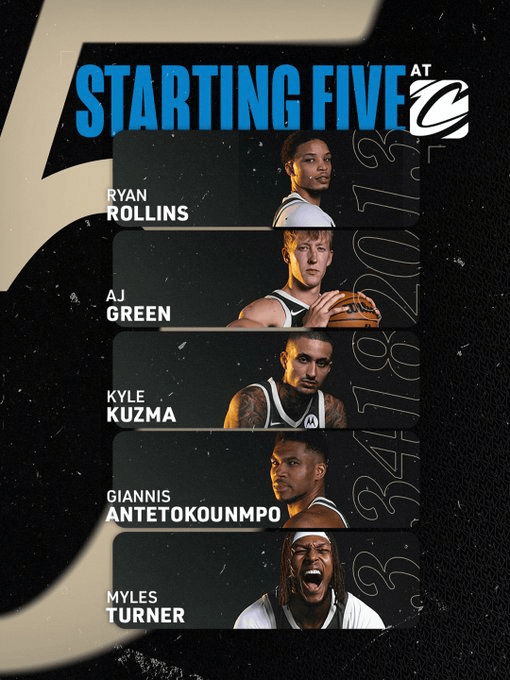 雄鹿首發:阿德托昆博、特納特納、羅林斯、AJ-格林、庫茲馬。
