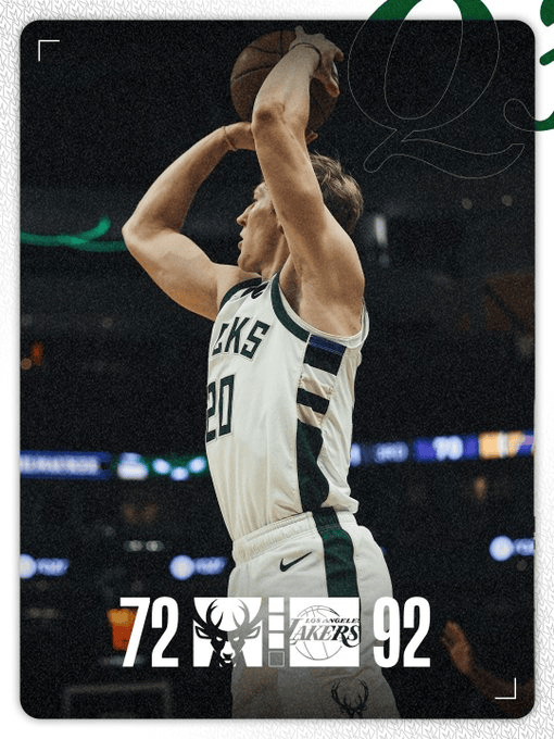 虎撲11月16日訊 今天NBA常規賽雄鹿主場對陣湖人的比賽已經結束。全場戰罷,進分雄鹿以95-119不敵湖人。進分