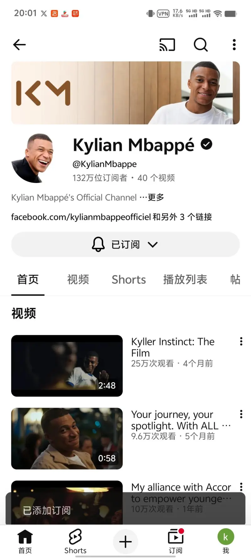 商業價值也看不出來多多少,訂閱還是相比播放沒有什么大的差距,姆巴佩這個號還是哈蘭18年的