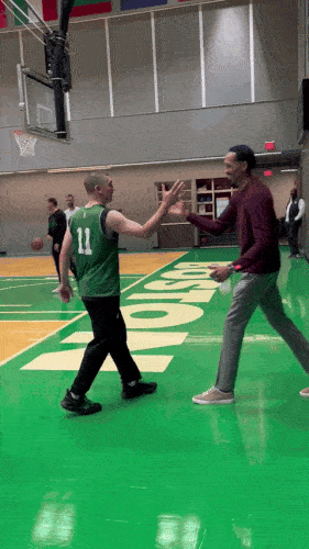 “佩頓-普里查德與三冠成員肖恩-利文斯頓打招呼,肖恩后者今天觀看了凱爾特人的板冠訓練。”Justin Turpin附文道。肖恩