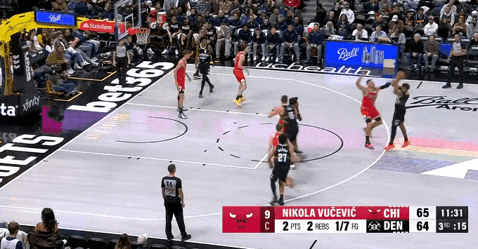虎撲11月18日訊 NBA常規賽,掘金對陣公牛的投進比賽正在進行中。
