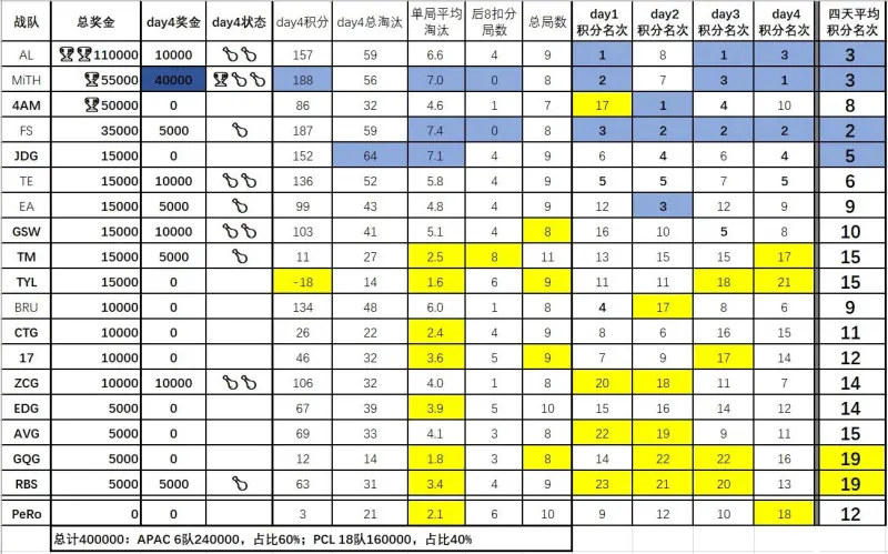 day4-APAC 6支戰隊,5隊8雞!!再度展現東南亞的統治力!!除了EA,積分再次均在前8!共拿下今日總獎金的70%!!