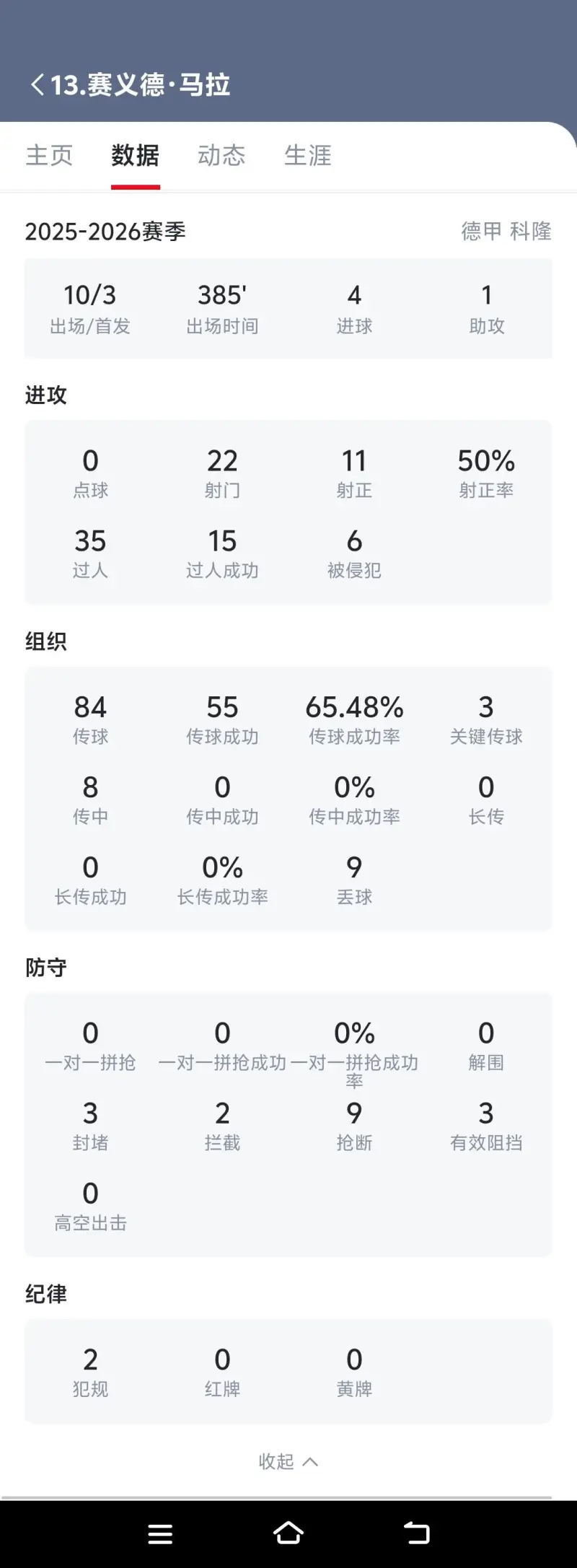 本賽季出場385分鐘4球一助
