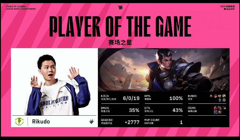 虎撲11月12日訊 在剛剛結束的SHB對陣GBS的比賽中,趙志銘使用趙信打出6/0/19戰績,使用斬獲SHB對陣GBS第一局MVP